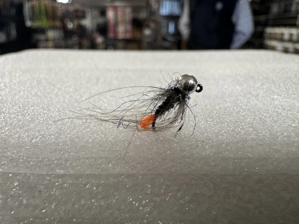 Tajemství této mušky spočívá v geniálním kontrastu – nenápadné tělíčko dává rybě pocit přirozené potravy, zatímco zářivý oranžový prvek na konci funguje jako neodolatelný terč.